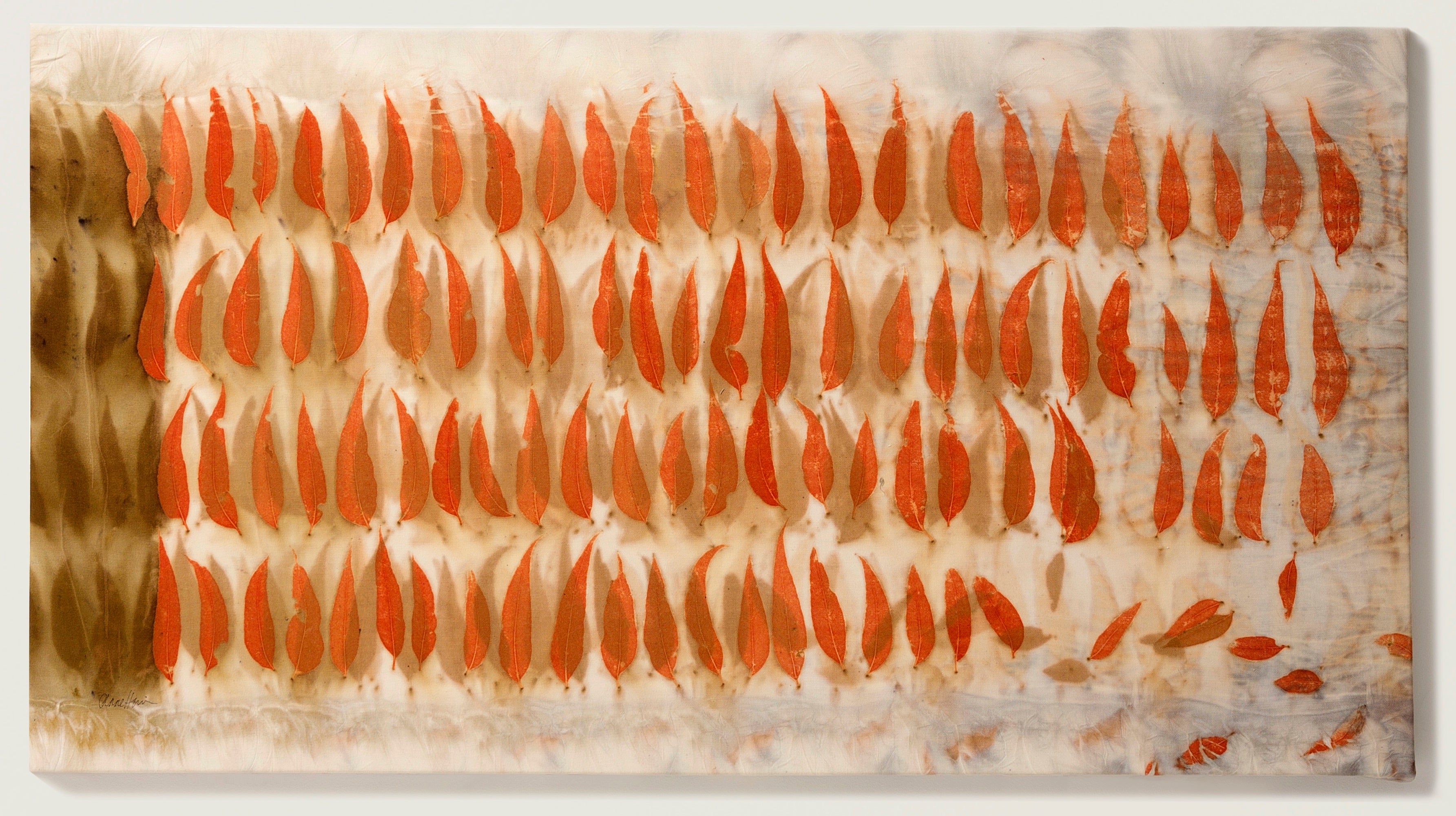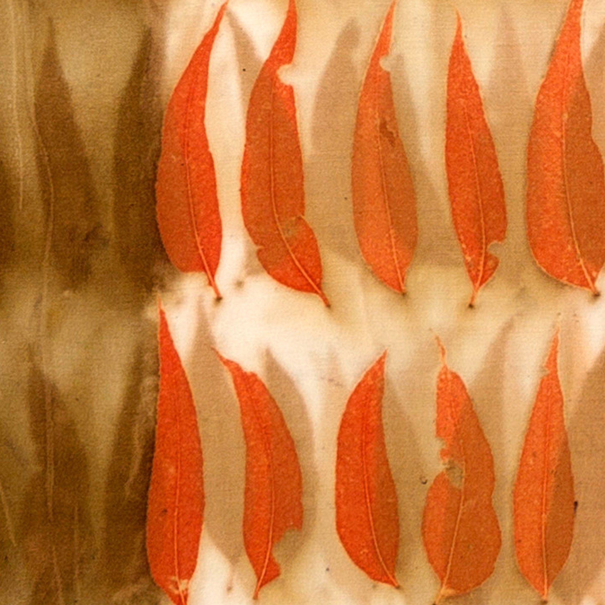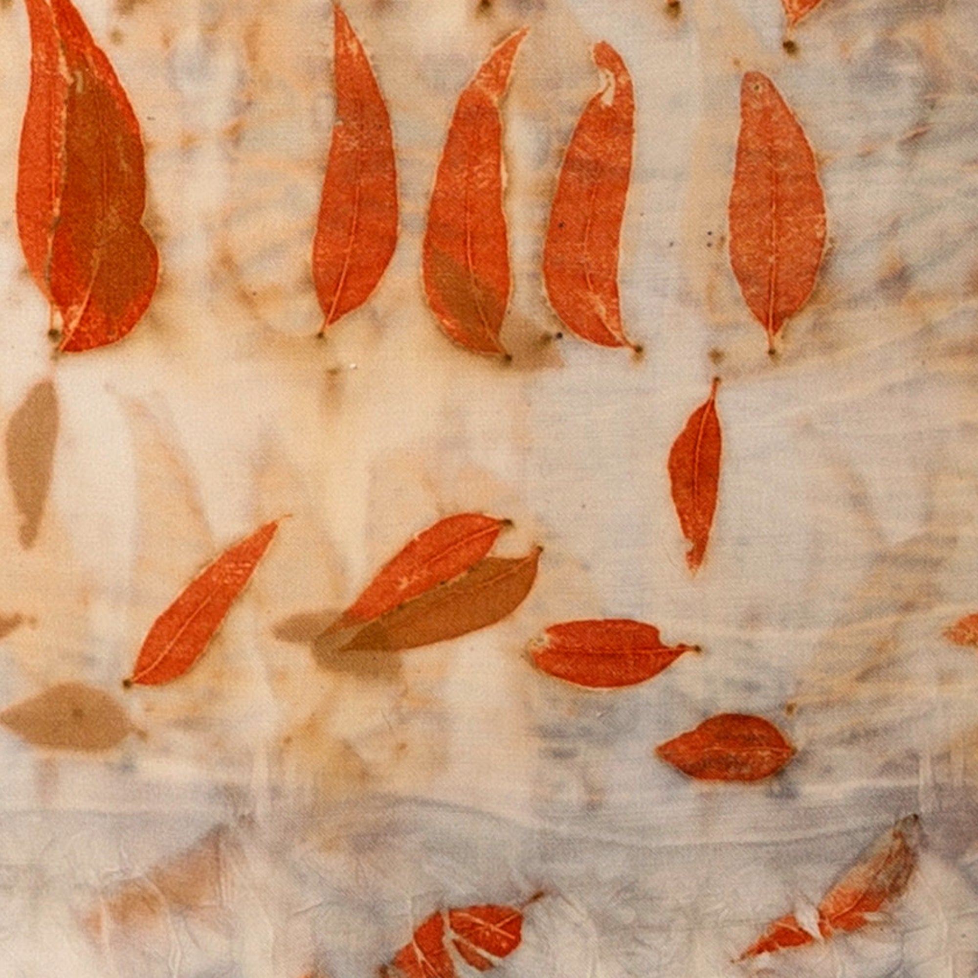 This is an original artwork that uses the plant pigments and heat to transfer the prints onto the fabric. The unique process ensures the unique imprint of each leaf captures the essence of time and place, holding the magic of that one moment in time for the life of the artwork.