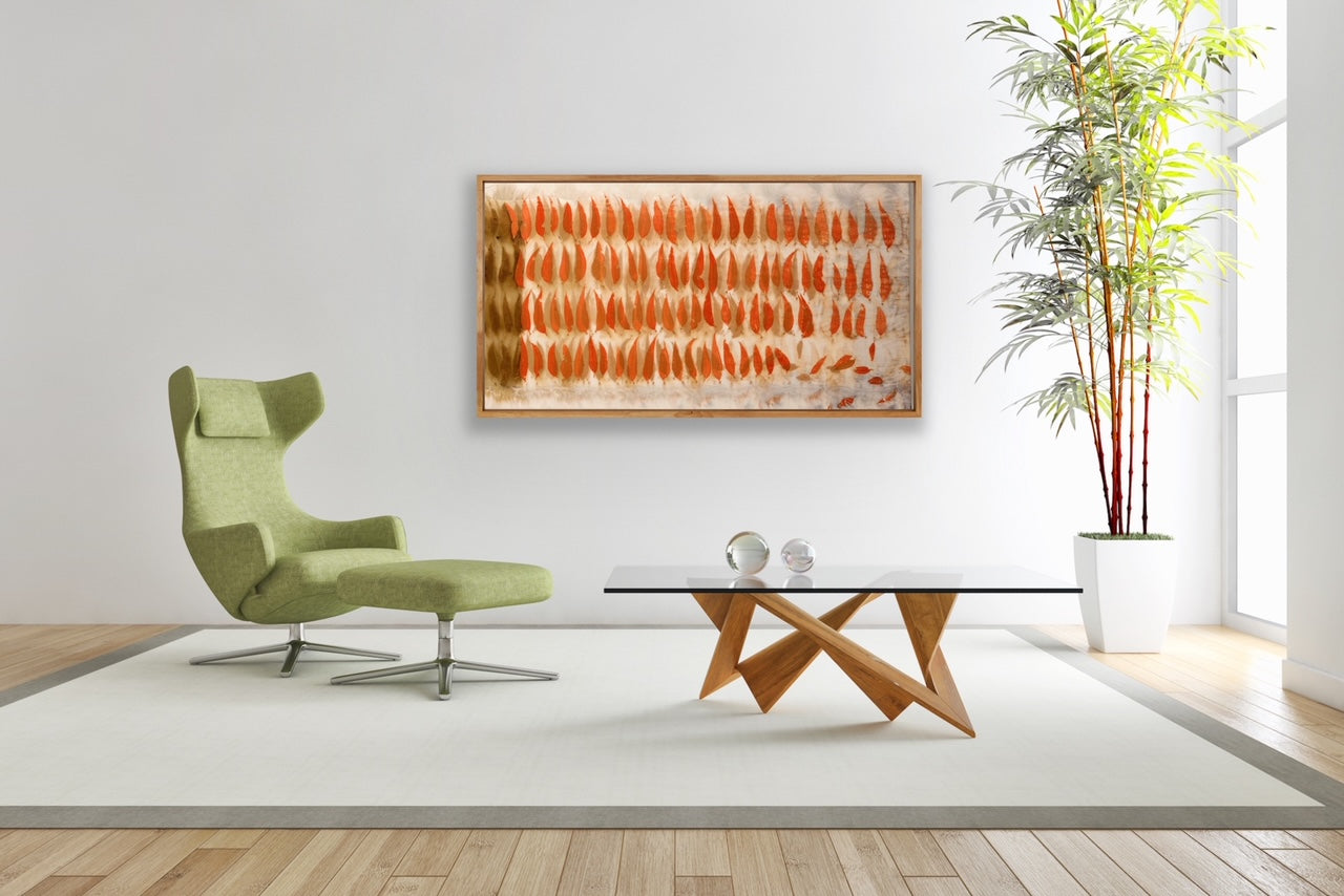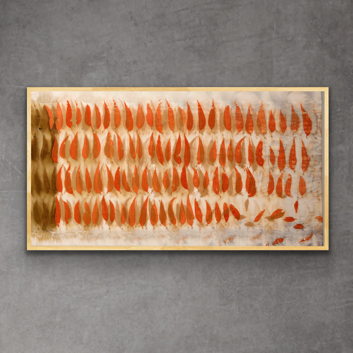 This is an Original Plant Dyed Artwork, it is still alive and as with all fine art it needs to be kept out of direct sunlight. Use a Clean Dry cloth to remove any dust that may gather on the fabric surface. Do not use water or any other cleaning fluids on this work. The colours will change over time as they settle on the canvas, this is part of the unique beauty of natural dye.