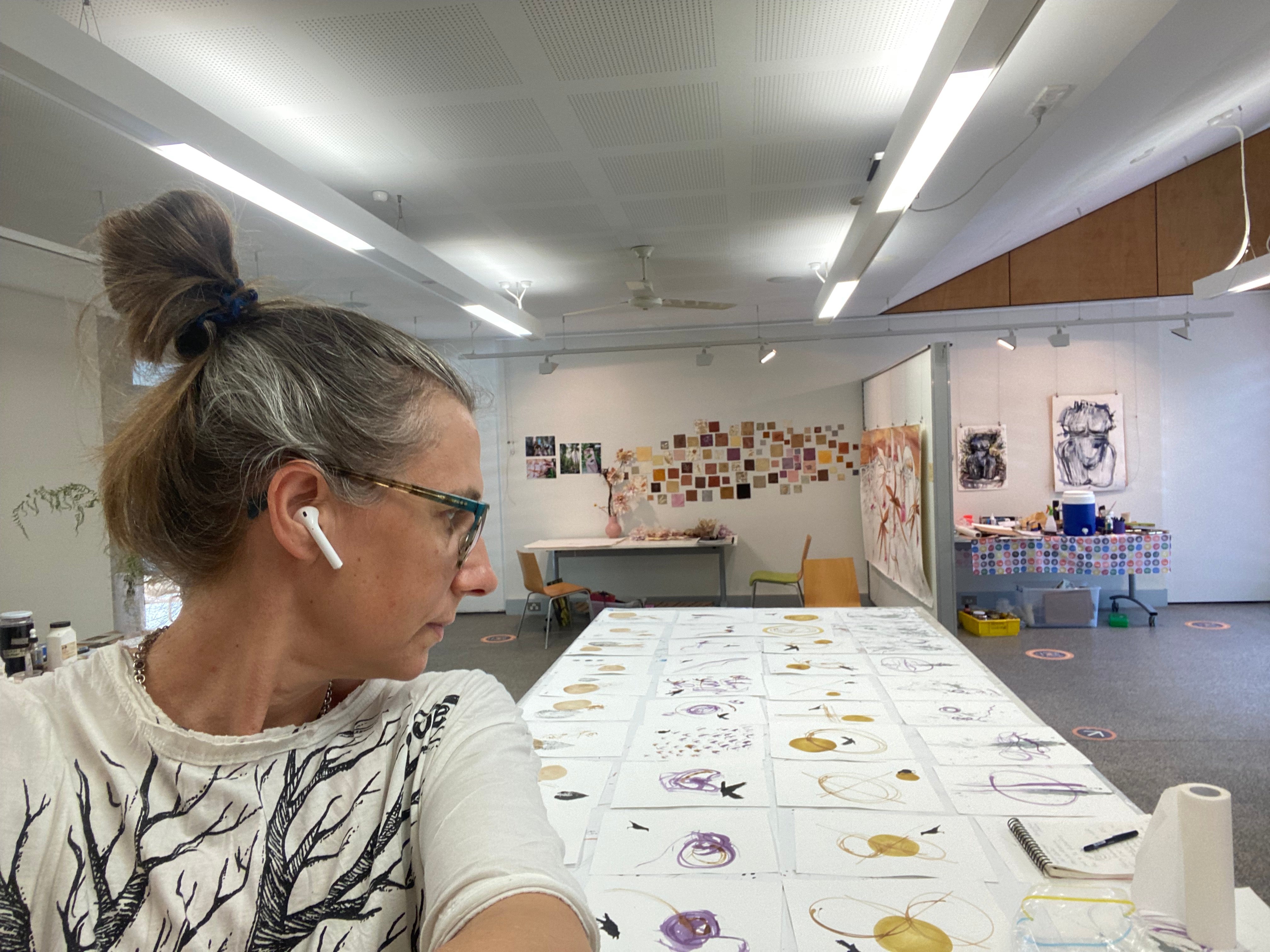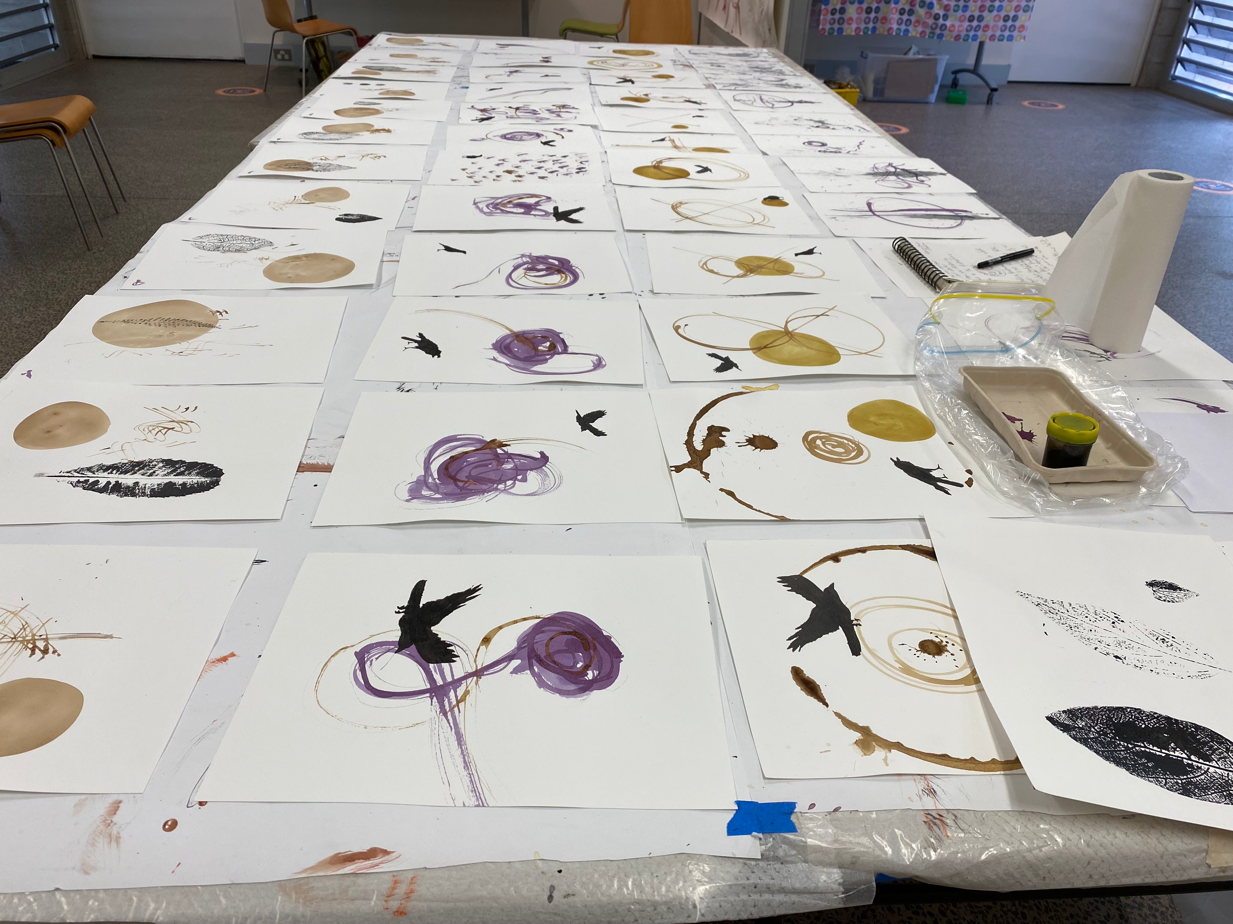 Working with a 1000 year old Eucalyptus Tree that had fallen led me on a five year journey of learning and connection. Some of the leaves were used to create this series of work, that follows the lifecycle of Endings, Walking side by side, New Beginnings and Renewal. A lot of the wood went back into the community as sculpted native bee hives that honour the history, culture and stories embedded in the people, the country, and in its plants. Learn more of the story at Tree Place.
