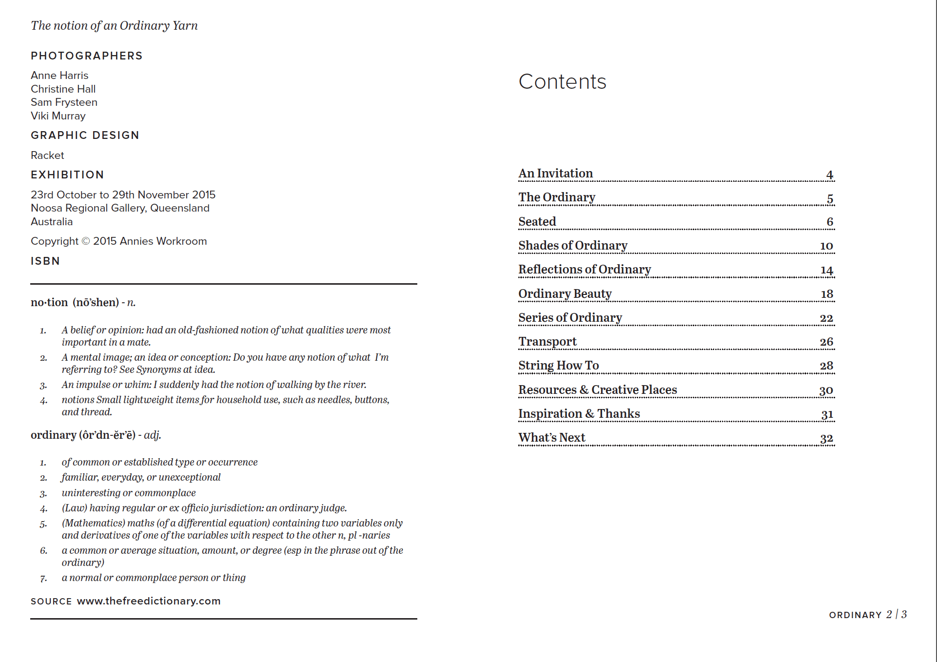 This Zine Records the Story and Images of my Exhibition Notions of an Ordinary Yarn.